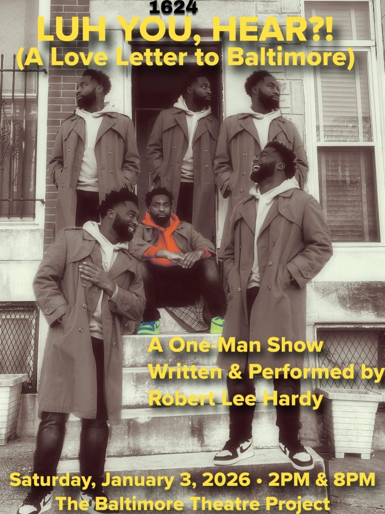 LUH YOU, HEAR?! is a one man show of original monologues that honor the voices and people who shaped Robert growing up in Baltimore. It blends storytelling, poetry, transformative character work, and a touch of stand up comedy to capture the rhythm, grit, and humor of the city. The show is a celebration of survival, resilience, and the culture that raised him. Each moment moves between laughter and heartbreak, memory and imagination, revealing the soul of a city that is as radiant as it is gritty. Through these stories, Robert pays tribute to Baltimore’s heartbeat, its people, its language, its love, and how it continues to live through him and his art. At its heart, it is all things Baltimore.